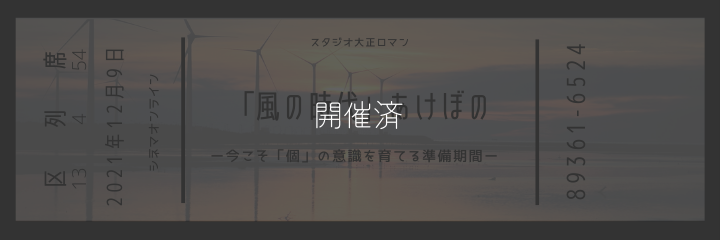 14Nov2021 12月9日(木)21-23時 「『風の時代』あけぼのー今こそ「個」の意識を育てる準備期間ー Tweet Share +1 Hatena Pocket RSS feedly Pin it 新たな価値観が育まれる時代「風の時代」に突入 西洋占星術では、昨年12月より「風の時代」に突入しています。今後200年続くと言われる「風の時代」は、新しい価値観が育まれる時代の到来を告げるものと言われています。 すでに世の中はさまざまな面で激変を迎えています。その幕開けとして、二拠点生活やテレワーク、5Gなど通信の発展が進むことは予想されていましたが、まさか世界を揺るがすウイルスがこんなにも世の中を変えてしまうとは、思いもかけないことでした。ネットでの情報拡散など、より高度な情報化社会へと進化していく一方、コロナでのソーシャルディスタンスやマスク生活によって、顔を合わせて話すからこそ伝わる、表情や声のトーンなどによる非言語コミュニケーションは希薄になってきています。 また、IT企業などはこぞってオフィスをたたみ、社員は個々の家で仕事をこなす働き方へと方針を転換。正社員が減り、社員であった人々は個人事業主として仕事を請け負い、自由な横のつながりを得て、幅広くさまざまな会社、個人と仕事をしていく時代になると言われています。時間や場所から自由になって働けるメリットを享受するのと同時に、組織という後ろ盾を手放すデメリットや、社会全体が組織内部で受け継ぎ、保持していた歴史、文化の連続性をどう保つかについても注目が集まりそうです。 私たち一人ひとりがそれらをどのように受け止めて生きていけばいいのか?今こそ「個」の意識を育てる準備期間とも言われています。 新たな価値観が生まれた大正時代 大正時代はまだ普通選挙が行われておらず、選挙権を持つのは一部の人たちだけでした。大正末期の1925(大正14)年にやっと普通選挙法が成立し、満25歳以上の男子だけに選挙権が与えられました(女性の選挙権が認められたのは1945年です)。 このオンラインスナックの店名でもある「大正ロマン」は、大正時代に花開いた大衆文化の様子を言い表す言葉です。大正時代は仕事をする職業婦人が登場し、洋装に断髪という特徴的な装いが生まれました。西洋文化の影響を受けた装いの彼女たちは、モダンガールと呼ばれました。 大正時代で忘れてはいけないのは、第一次世界大戦が起きたことです。1914(大正3)年から1918(大正7)年の大正初期に起こりました。戦時中は世界的な品不足から、貿易を積極的に行った日本は好景気になりましたが、戦後は大不況に陥ります。 また、第一次世界大戦の反省を踏まえ、1920(大正9)年には、国際連盟が発足します。発足時点で、日本は常任理事国に就任しましたが、昭和に入って脱退しています。 1920(大正9)年には、箱根駅伝の第1回も開催されています。また、ベルギーで開催されたアントワープオリンピックでは、日本人選手がテニスで銀メダルを獲得し、日本初のメダル獲得に日本は熱狂しました。 このように大正時代は、政治においても文化の面でも、新たな価値観が生まれた時期と言えそうです。 開催概要 ■テーマ:「『風の時代』あけぼの」ー今こそ「個」の意識を育てる準備期間ー ■開催日時:12月9日(木)21:00-23:00 ■開催場所:オンライン(Zoom) ■対象者:「『個』の意識を育てる」など、普段はあまり話さないようなテーマで、ワイン片手にカジュアルに話してみたい方! ■料金:12月キャンペーン価格 1,500円(税込) ■定員:12名(予定) ■ワインエキスパートおすすめ今回のテーマワイン:お好みのスパークリングワイン スパークリングワインで、「風の時代」あけぼの、新しい時代の到来を皆さんで軽やかに祝いましょう。お近くのワインショップやスーパーでお気に入りのスパークリングワインを選んで頂いても良いですし、迷う方はチリの人気ワイン「コノスル」のスパークリングが手に入りやすく、美味しくておすすめです。 https://conosur-lovers.jp/product/sparkling/ 希望者は、事前に、お近くのお店や通販サイトなどで各自お買い求めください。当日ワインエキスパートより解説があります! ■事前課題 下記についてスライド1枚程度に簡単にまとめて来てください!パワーポイントなどのプレゼンテーションソフトを用いても、手書き(サインペンなど太めのペンで)のいずれでも大丈夫です。オンラインでシェアしていただくので、他の参加者が見やすいよう、文字は少なめ、イラストやチャートなどで表現してみてください! 1. 世の中がさまざまな面で激変している今、あなたに関わりが深いものにはどのようなものがありますか?(もちろん、上記の本文に記述されていない変化でもOKです!) 2. 1.で挙げた変化に対応していくために、あなたが大切にしたい思う意識にはどのようなものがありますか? 予約する Tweet Share +1 Hatena Pocket RSS feedly Pin it 10月14日(木)21-23時 「傍楽(はたらく)こと 有難き(ありがたき)こと」ー自己実... 12月18日(土)16-18時 「大正ロマン」クリスマス